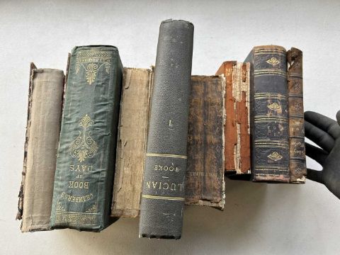 Mixed lot of 8 antiquarian books, large format to include 1848 Janes Pilots Guide to The Thames, Natural History of Man 1874 etc - reference 238