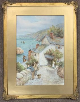 W. Sands (aka Thomas Herbert Victor RA, British,1894 -1980)), inscribed on backboard label 'Clovelly Harbour', watercolour, 38x55cm, signed, framed and glazed.