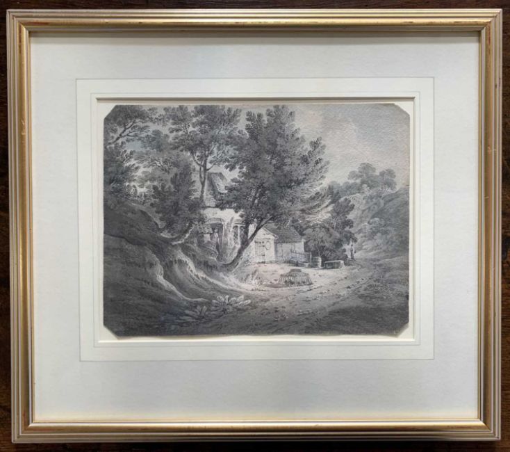 Rev James Bourne (1773-1854) 'A Cottage in Elliot's Lime Pits', Croydon, watercolour and wash, circa 1825, Abbott and Holder label on backboard, 25x33cm, framed and glazed.