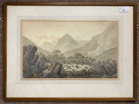 Attributed to William Frederick Wells (1762-1836), inscribed on backboard 'Glenocoe W.F.Wells', watercolour, 22x37cm, framed and glazed.