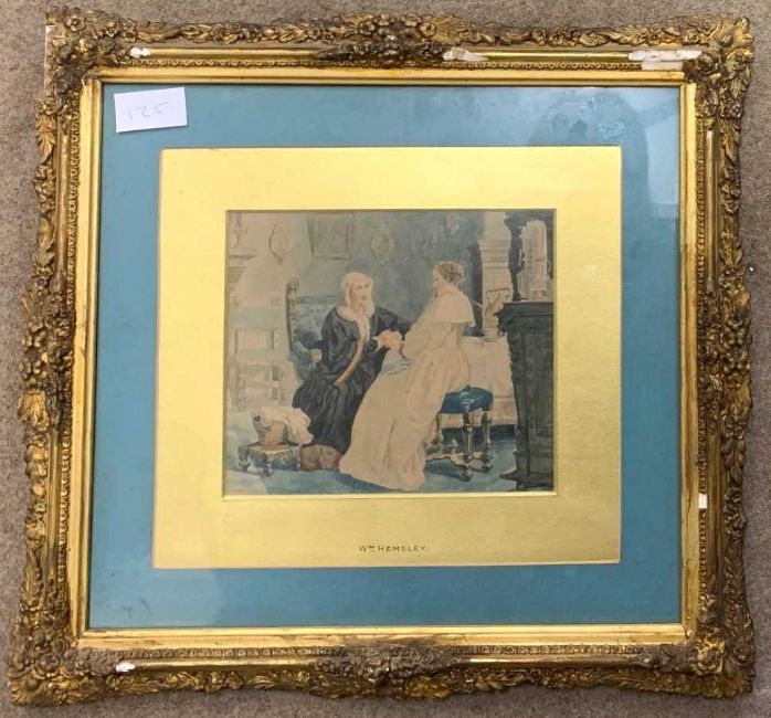 William Hemsley RBA (British, 1817-1906), Interior scene, watercolour, signed, framed and glazed.
