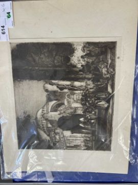 After Frank William Brangwyn (1867-1956), Six monochrome lithographs laid on card, inscribed 'Brangwyn' to lower right in pencil,17x24cm,19x21cm, unframed (6)