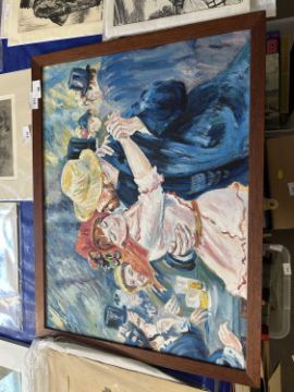 After Pierre Auguste Renoir (French,1841-1919), Dance in Bougival, oil on board, 43x59cm, framed