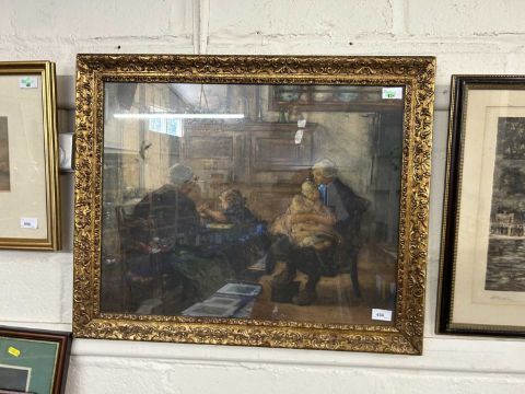 Victorian School, Interior scene with women and children, etching with aquatint, unsigned, 48x61cm, framed and glazed