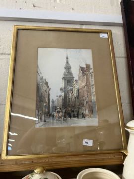 Victorian School, Street scene with coaches and horses, giclee, 24x34cm, framed and glazed.