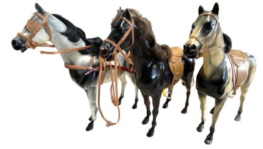 Three Sindy horses and trap