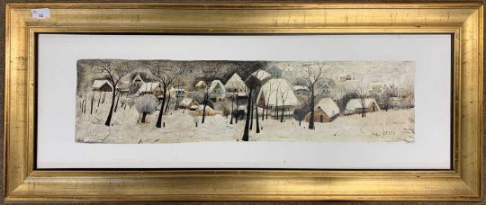 Georges Damin (French,1900-1975), Winter landscape, oil on canvas, signed, 28.5x88cm, framed