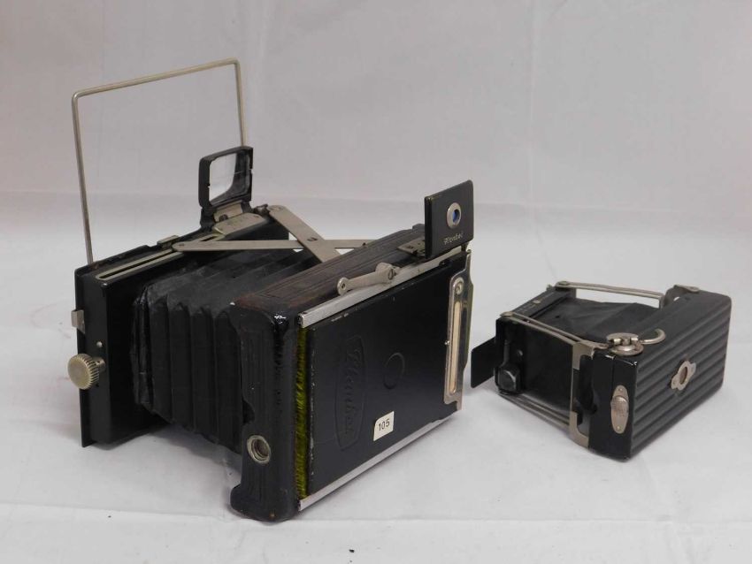 A Plaubel Makina folding camera and an Ensign 'Ensignette', (2)