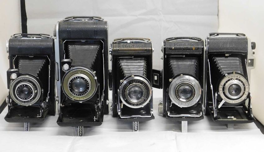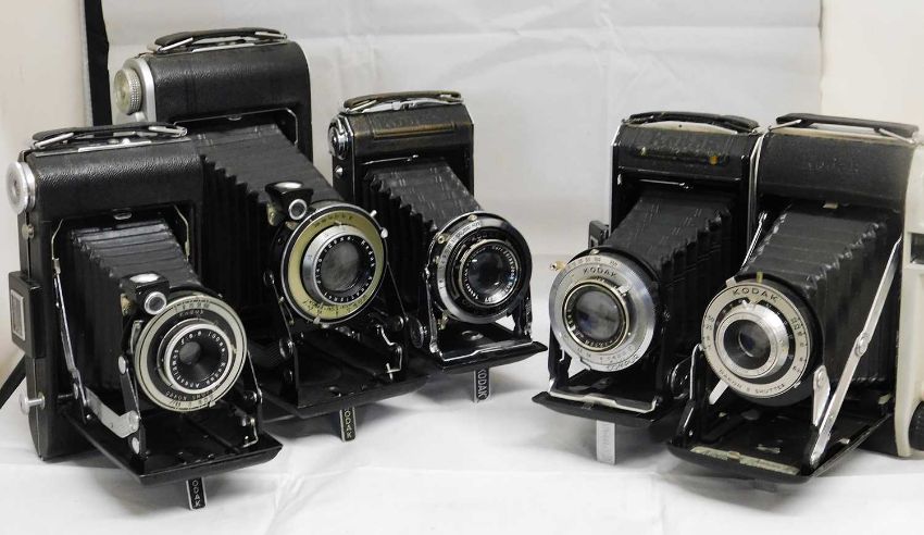 Five Kodak cameras: to include a Kodak Vigilant Six-20; a Kodak Monitor Six-16; a Kodak Vollenda 620; a Kodak Vollenda 620; and a Kodak Junior II Camera, (5)