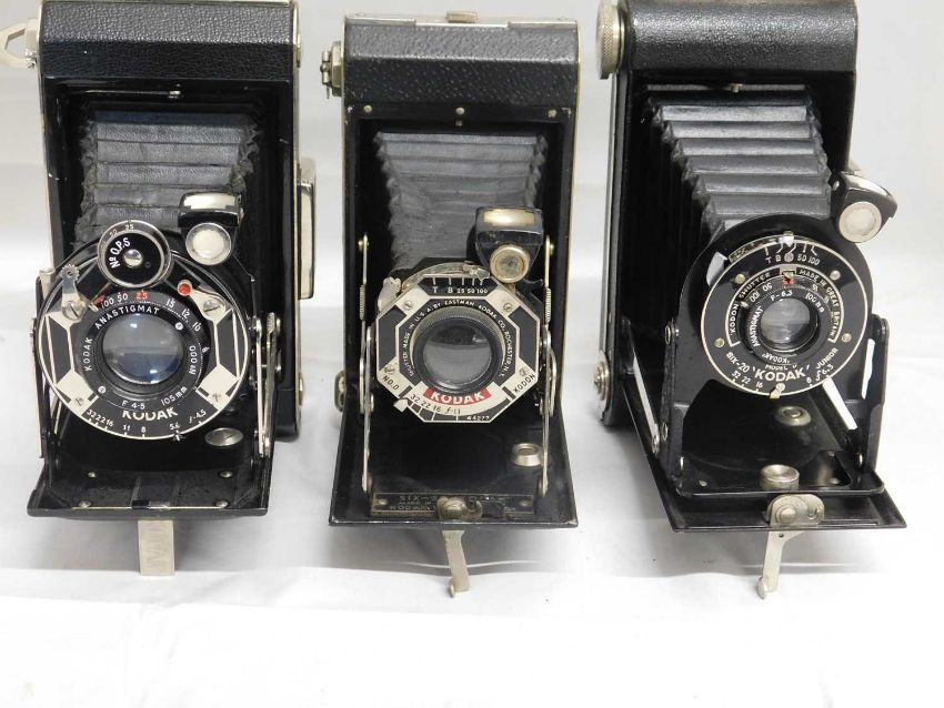 Three Kodak camera's: to include a Kodak Sx-20 Model C Folding camera; a Kodak Six-20 folding camera and a Kodak Six-20 Junior, (3)