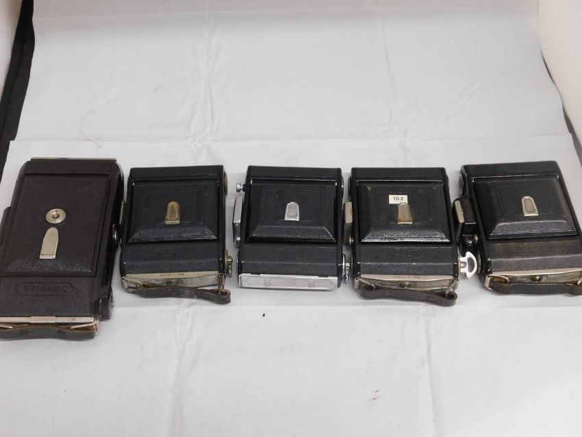 Five camera's: to include a Zeiss Ikon Simplex; a Zeiss Ikonta; a Zeiss Ikon Telma; a Zeiss Ikon Ikonta; and a Zeiss Ikon Ikonta, (5)