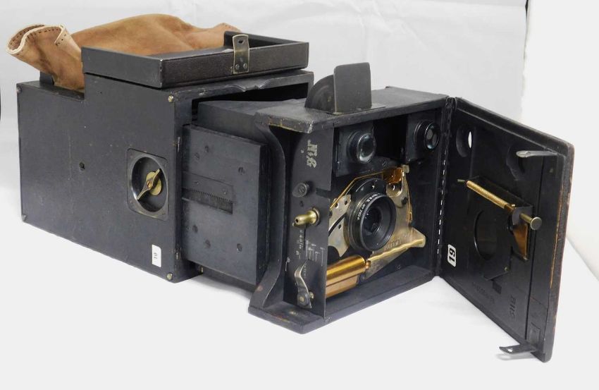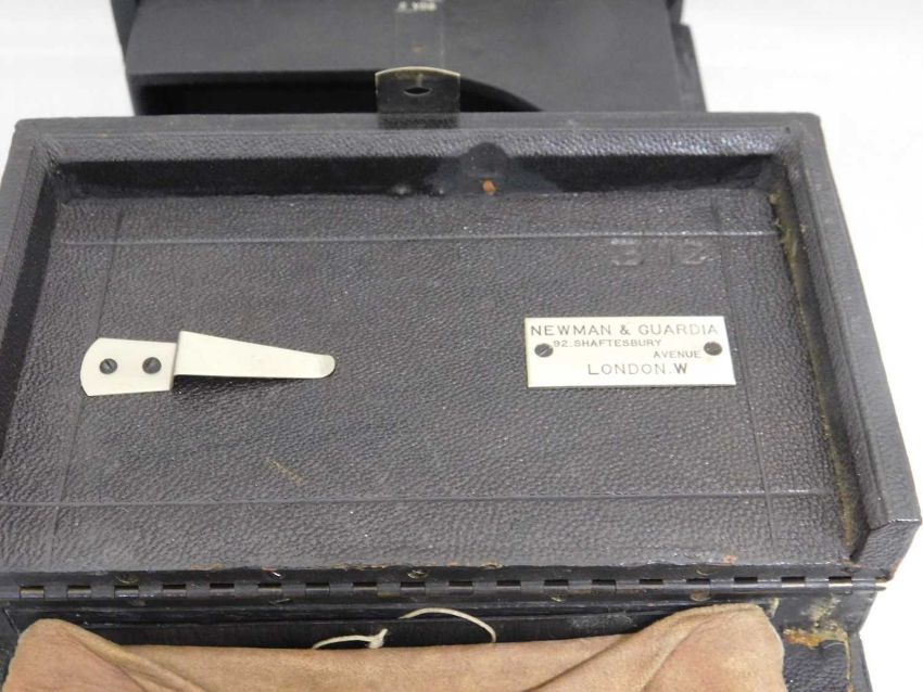 A Newman & Guardia Universal Special Pattern B box plate camera, with Wray London 5 1/2" lens, Rd. No. 200964