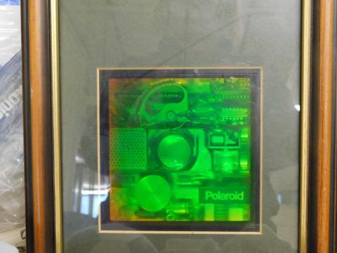 A quantity of camera promotional and point-of-sale material: to include a Leica 'Family Tree' framed poster; Olympus counter top displays; a 'holographic' Polaroid display; a Konica 'build-it-yourself' aeroplane; etc.