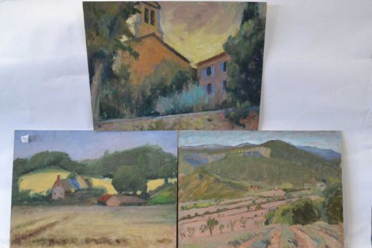 Pauline Plummer, three landscape studies, oil on board, two signed and dated 2007 and 2010, 51 x 38cm, unframed