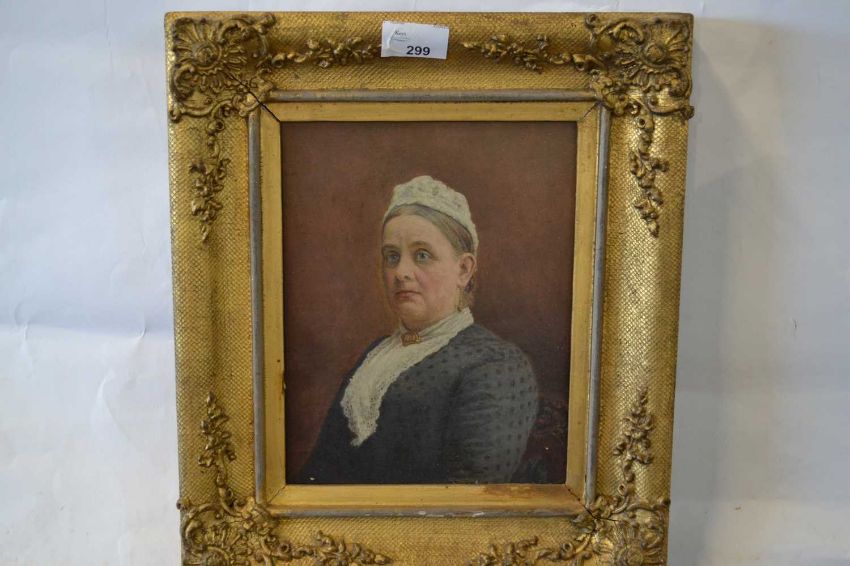 Victorian School bust portrait of a lady, oil on canvas, unsigned, gilt framed, 23 x 18cm