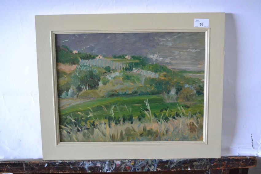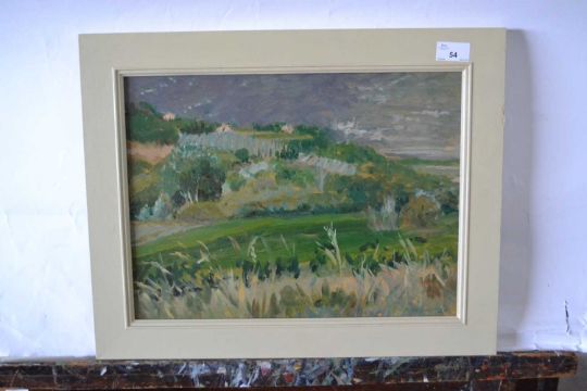 Pauline Plummer, "A Prospect Near Roussillon", oil on board, signed, 15.5" x 11.5", framed