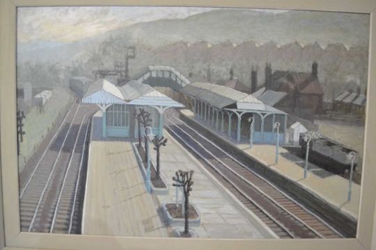 Attributed to Pauline Plummer ,"Hexham Station" oil on board, unsigned, attribution label on back board, framed