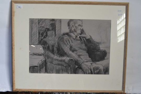Pauline Plummer "Late in the Afternoon", charcoal on grey paper laid on board, signed and dated 1994, 54 x 36cm, framed and glazed