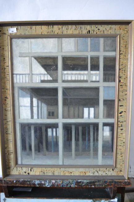 Attributed to Pauline Plummer "Palace", oil on canvas, unsigned, RBA Spring 1964 and Tour label on canvas verso with an additional oil on the back of the canvas of a female nude in an interior setting, 62 x 49cm, framed