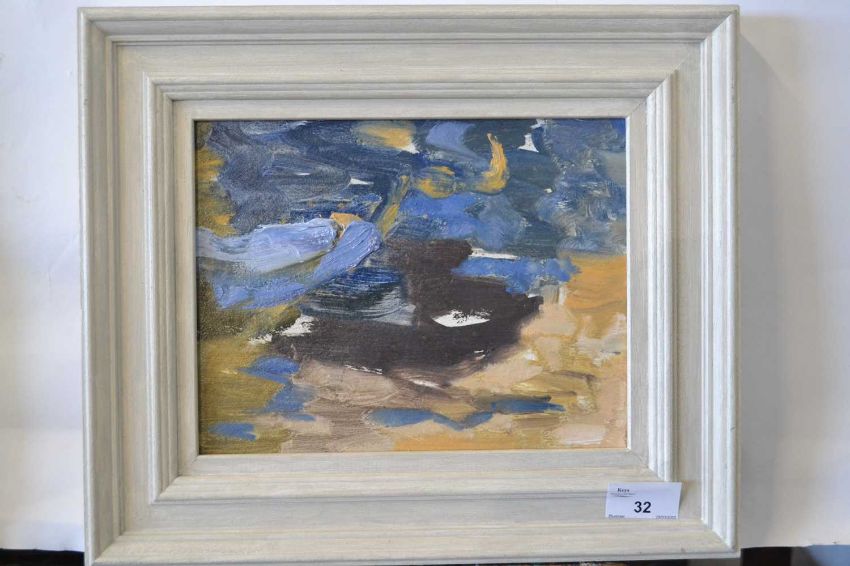 Attributed to Pauline Plummer, an abstract oil on board, unsigned, 22 x 17cm, framed.