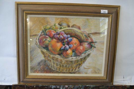 Pauline Plummer, "Christmas Basket", oil pastel on board, signed and dated 1993, 43 x 34cm