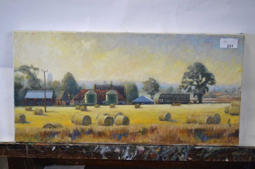 “My style is traditional. I enjoy the challenge of constructing a balanced composition from figures, still life or landscape. However it is landscape, which is my principal theme, usually including some structural feature such as a grand building like a church or mansion, or just a disintegrating hut, a bridge, a beached boat, or a wavering line of fence. I am fascinated by the changing colours and patterns of the agricultural scene, the brilliance of oilseed rape, or the dark shadows of potato furrows. There are also on a small scale, even in Norfolk, all those areas, which have been so carefully controlled, where the weeds grow high, and one can imagine oneself lost among them.