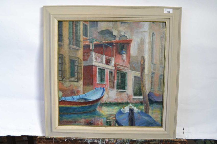 Pauline Plummer "Rio del Melcanton, Venetian", oil on board, signed and dated 2003, framed