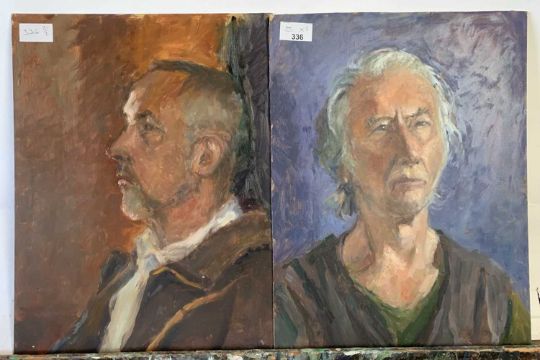 Attributed to Pauline Plummer, two bust portraits of two gentlemen, oils on board, unsigned, unframed, 40 x 31cm