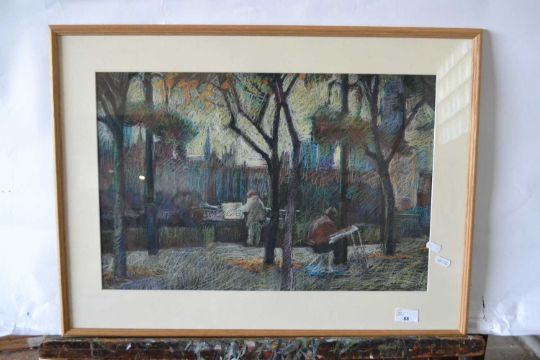 Pauline Plummer, "Hans Schwarz on Bank Side", pastel, signed and dated 1997, 21" x 14", framed and glazed