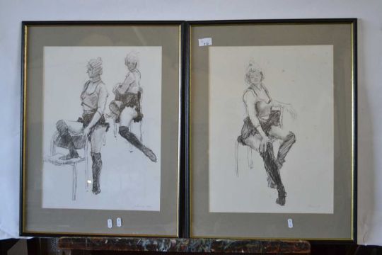 Pauline Plummer, "Dancer as Model and Dancer Resting", charcoals on paper, signed and dated 1994, 47 x 35cm