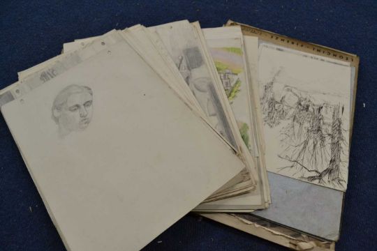 Attributed to Pauline Plummer, an assortment of preparatory sketches on paper