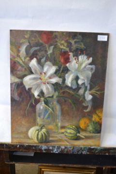 Pauline Plummer, still life study of flowers, oil on board, signed, unframed, 50 x 41cm