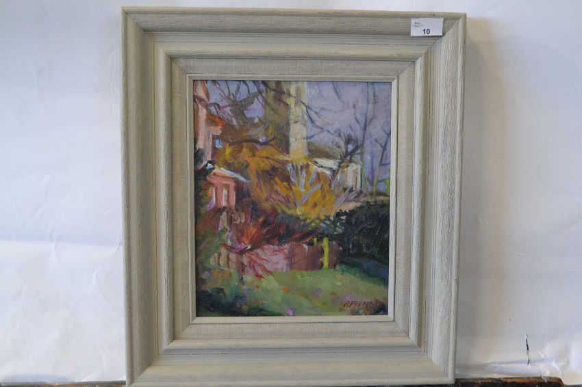 Pauline Plummer "The Green Gate", acrylic on canvas, signed and dated 2005, 29 x 24cm, framed