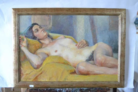 Pauline Plummer, Study of a female nude, oil on canvas, signed and dated 1999, 36" x 24", framed